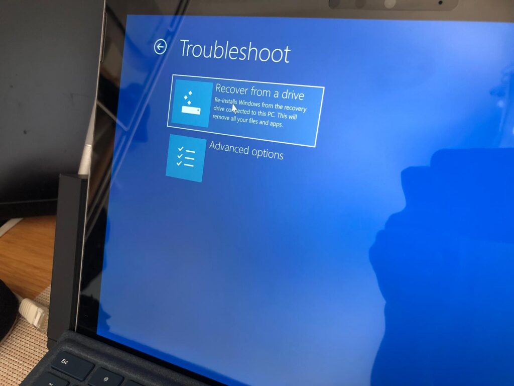 باید از USB Recovery Drive استفاده کنید.